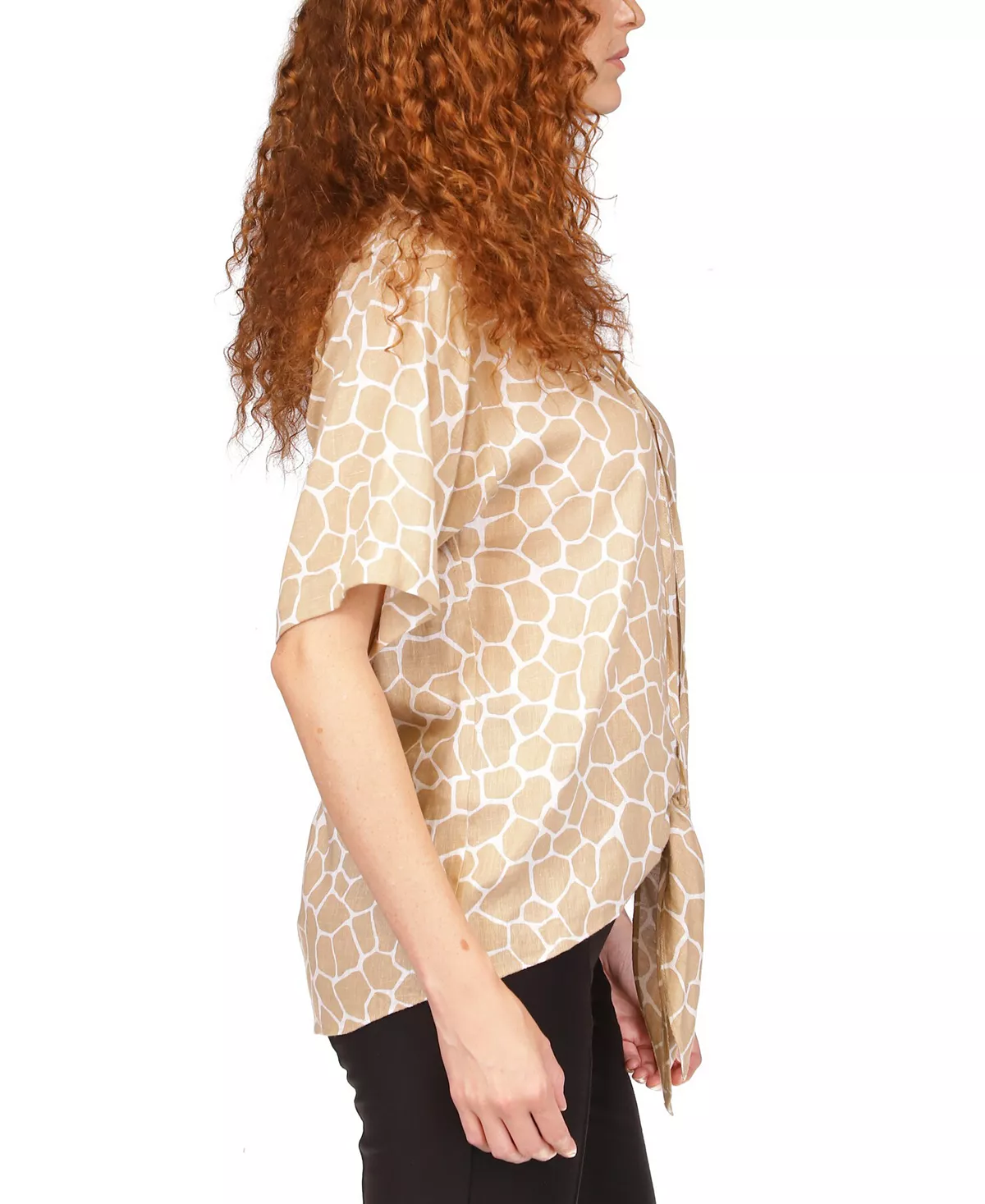 A trendy take on boho chic, this MICHAEL Michael Kors top accents an animal print with a lace-up neckline and tie hem.
