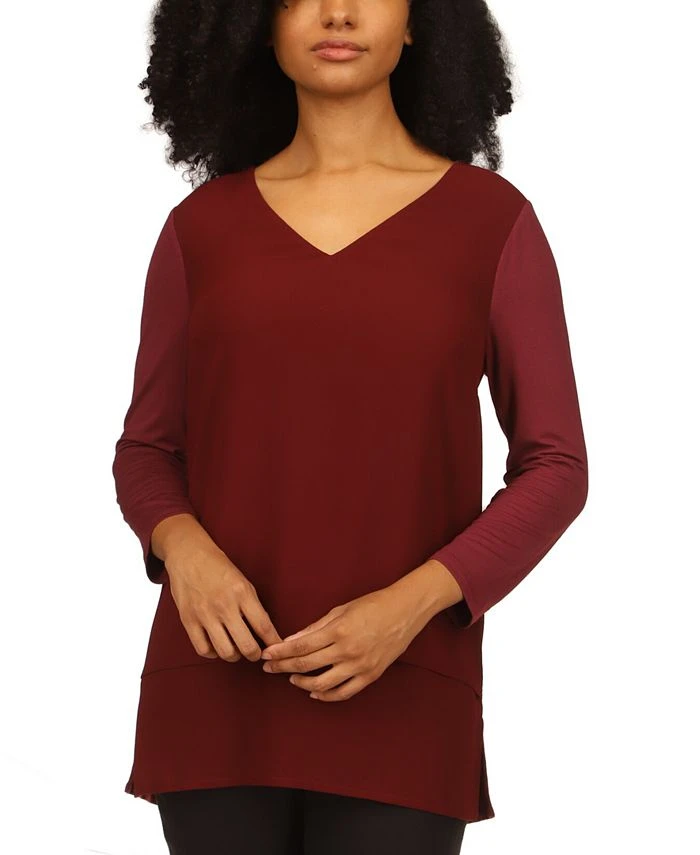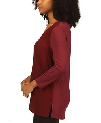 A sleek, layered-look design lends a high-style vibe to this unique Michael Michael Kors top, styled with an always-flattering V-neckline.