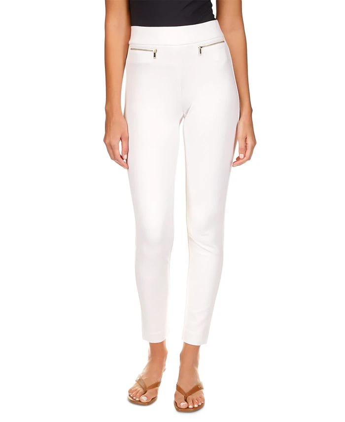 Stylish enough for the office with comfort you’ll love on weekends, these MICHAEL Michael Kors pull-on trousers accent knit fabric with gold-tone zip pockets.