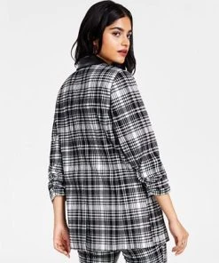 Bar III Women’s Plaid-Print Faux-Leather-Trim Blazer, Created For Macy’s