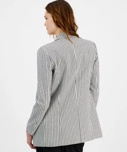 Bar III Women’s Mini-Check-Print Faux-Double-Breasted Jacket, Created For Macy’s
