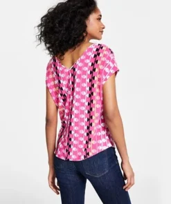 Bar III Women’s Printed V-Neck Knit Top, Created For Macy’s