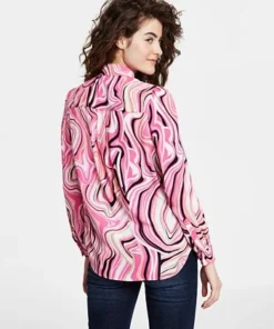 Bar III Women’s Swirl Print Button Down Blouse, Created For Macy’s