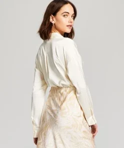 And Now This Women’s Drop-Shoulder Button Down Satin Blouse