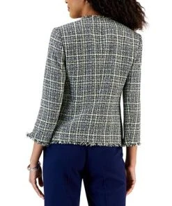 Kasper Women’s Zip-Cuff Notched Collar One-Button Jacket, Regular And Petite Sizes
