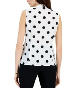 Kasper Plus Size Polka Dot Sleeveless Tie-Neck Shell Top