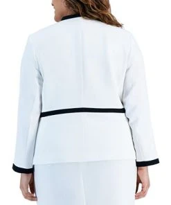 Kasper Plus Size Contrast-Frame Open-Front Blazer