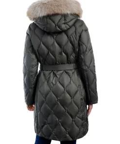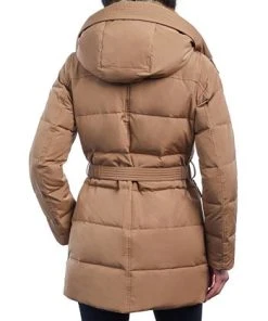 Michael Kors Women’s Belted Faux-Fur-Trim Hooded Puffer Coat