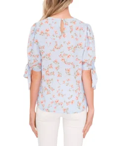 CeCe Women’s Coastal Floral Tie Sleeve Blouse