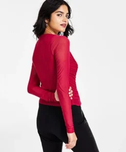 Bar III Women’s Square-Neck Ruched Mesh Top, Created For Macy’s