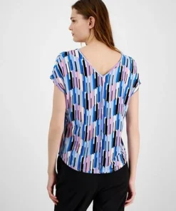 Bar III Women’s Printed Seamed V-Neck Short-Sleeve Top, Created For Macy’s