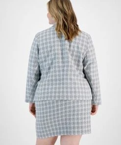 Bar III Plus Size Faux Double-Breasted Tweed Blazer, Created For Macy’s
