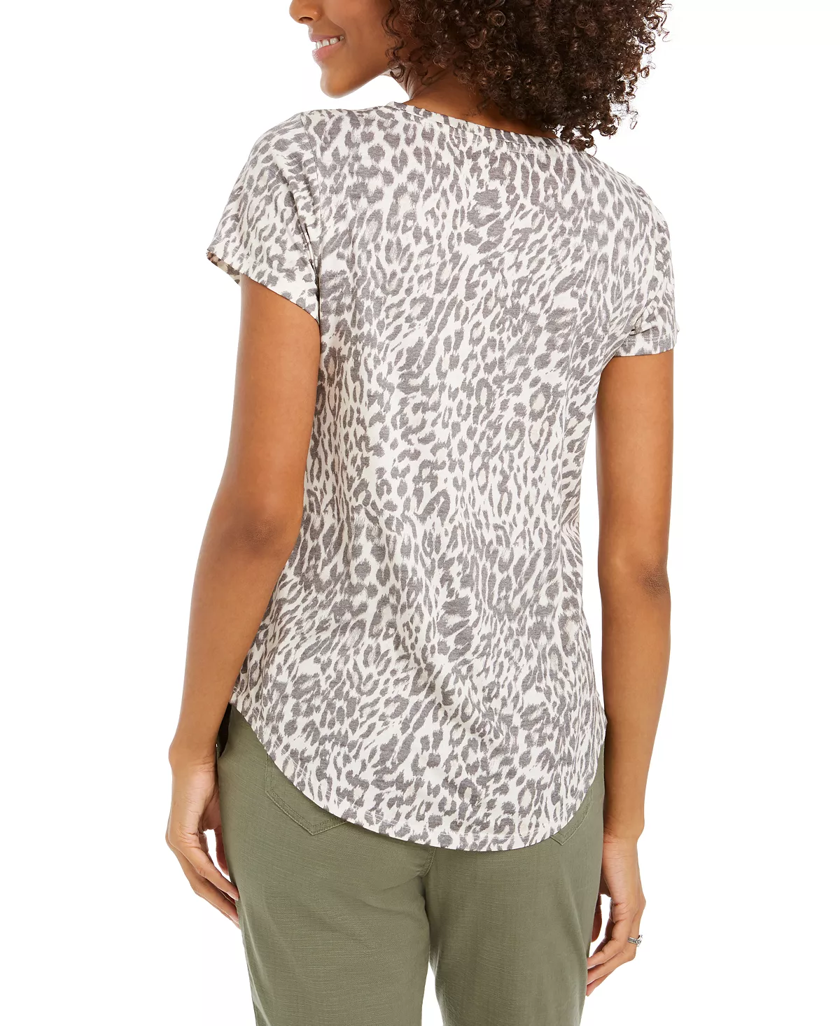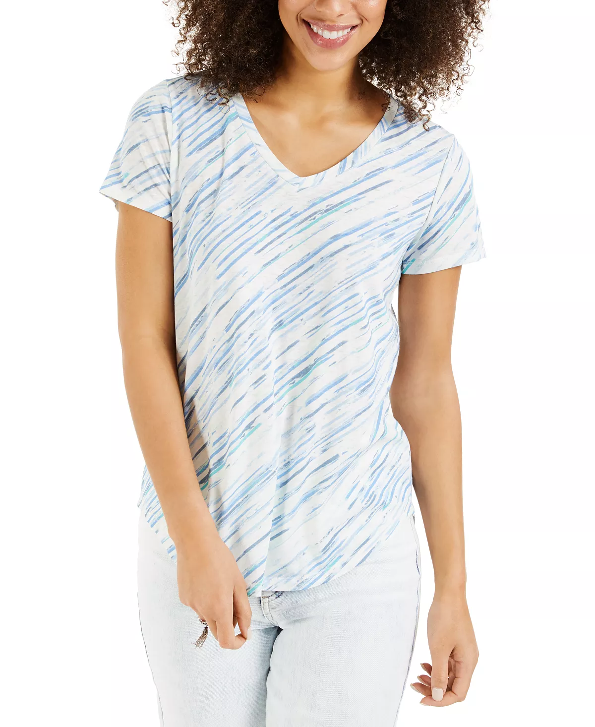 Fun stripes mix it up on burnout fabric, bringing a playful look and airy feel to this Style & Co T-shirt.