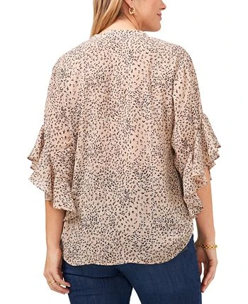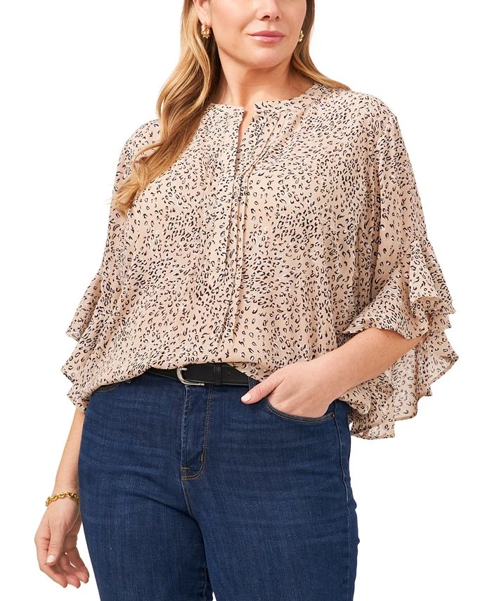 Vince Camuto Plus Size Cheetah Print Flutter-Sleeve Pintucked Henley Blouse