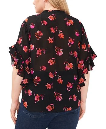 A gorgeous floral print and short, fluttery sleeves come together effortlessly on this plus size blouse from Vince Camuto.