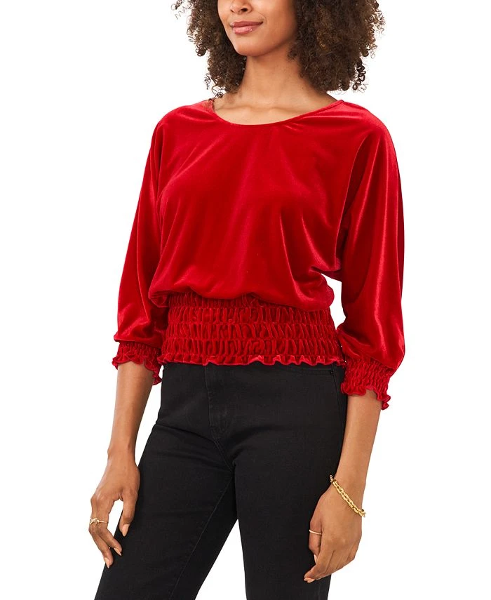 Rich smocking at the cuffs and hem brings elegant texture to this Vince Camuto top, in plush fabric and a solid color for versatile styling options.