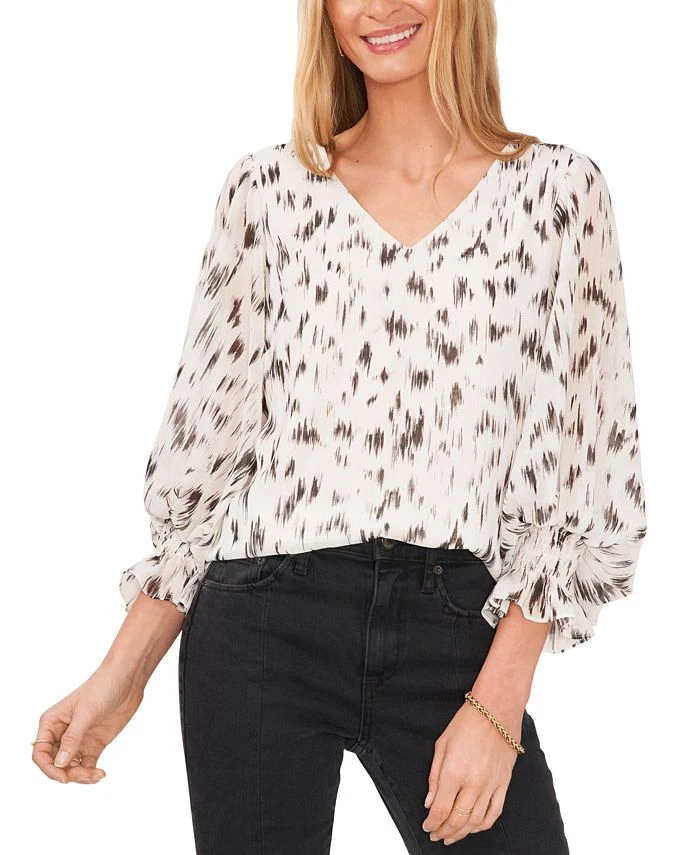 Easy and elegant, this Vince Camuto blouse features a sleek contemporary print capped with flowy sleeves.