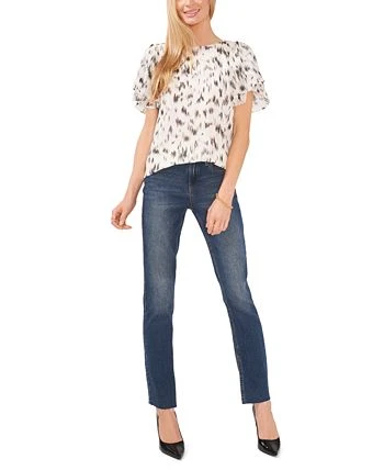Tiered petal sleeves take this Vince Camuto blouse to a stylish new dimensions. A sleek print keeps the look current.