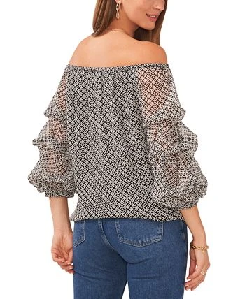 The perfect balance of charming and chic, this Vince Camuto top features an off-the-shoulder silhouette in a sleek contemporary print.